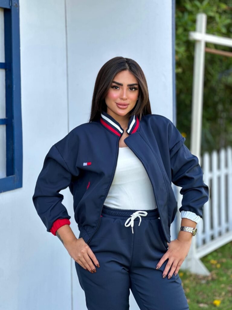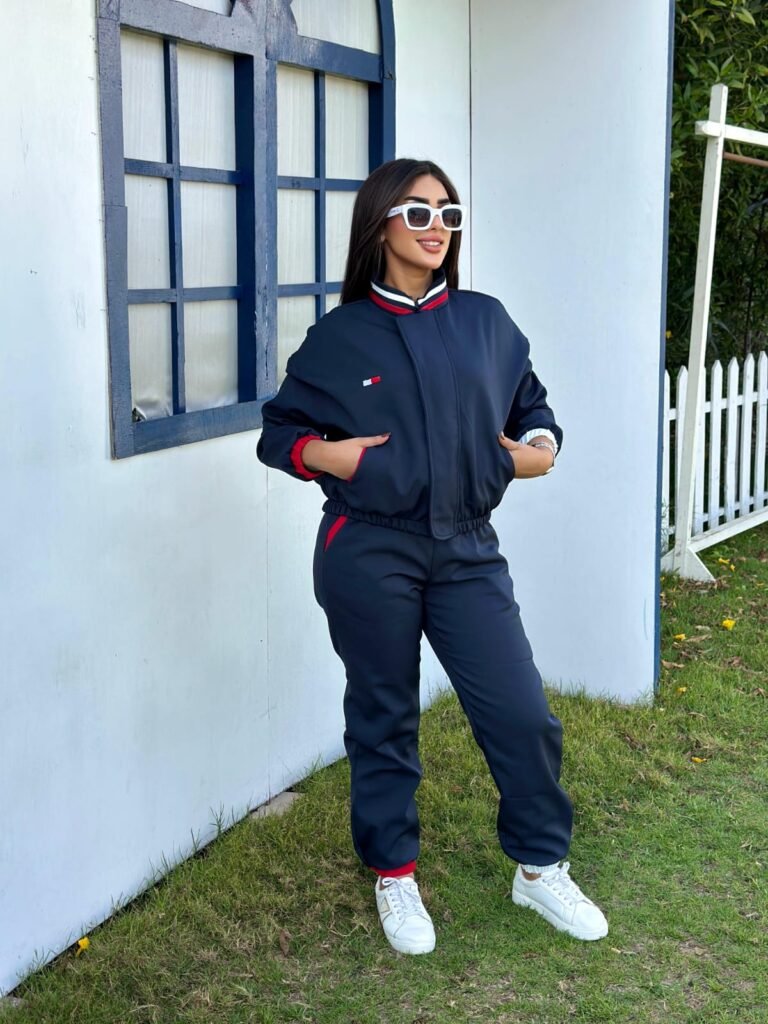 يا سيدتي، استعدي للانطلاق والتألق بأناقة لا مثيل لها! نقدم لكِ طقم التدريب العصري والمريح هذا، الذي يُعد القطعة المثالية لروتينك اليومي — سواء كنتِ متجهة للخارج في نزهة سريعة أو تستعدين لجلسة تدريب قوية.