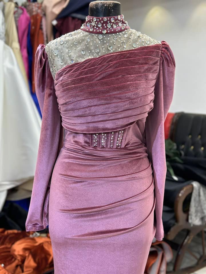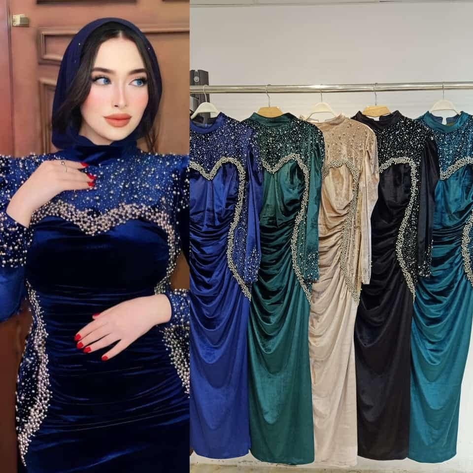 مجموعة فساتين سوارية تركي قطيفة ومحجبات وشتوي 50 صورة جديدة
